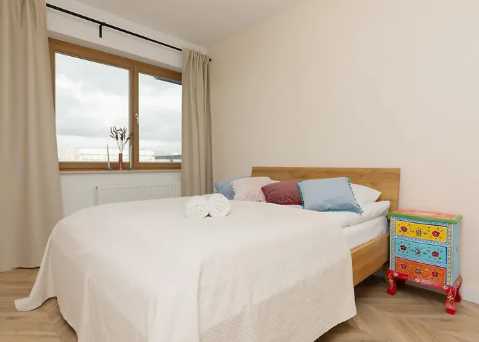 Stylish Apartment Zdziechowskiego With Parking & Home Office By Noclegi Renters boasts a kitchenette equipped with an oven and a dishwasher. The nearest airport is Warsaw Frederic Chopin, 5 km from the apartment, and Wynalazek 03 bus station is approximately 15 minutes' walk away.